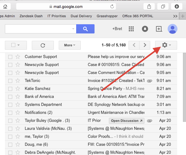 Next you will need to select the gear icon in the upper right hand corner and click on "Settings."