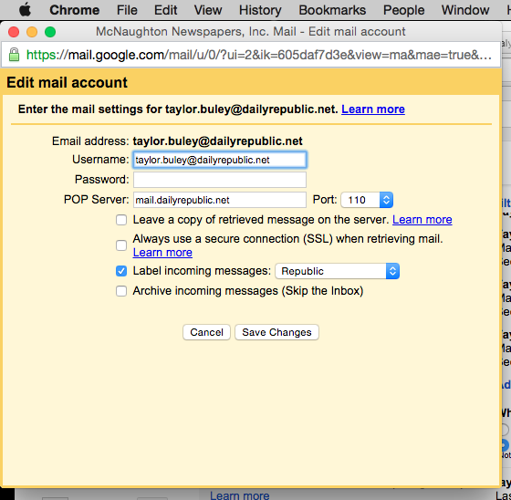 Follow Editing a Connected POP3 Account April 24, 2015 17:44 McNaughton Newspapers, Inc. General FAQ 0 Comments Please sign in to leave a comment.