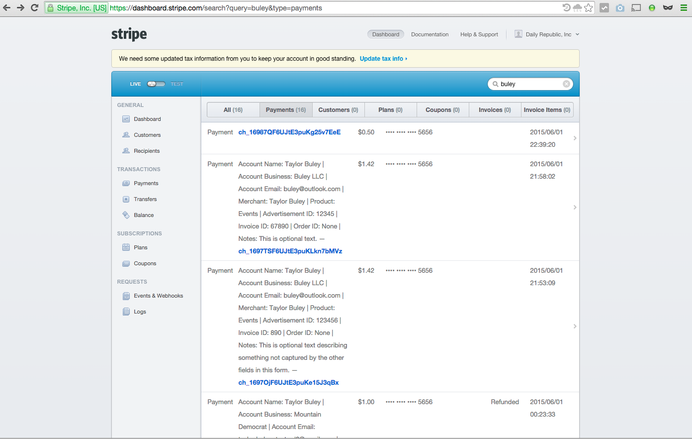 The only way to view a Payment Record is via the Stripe Dashboard. There's no fullproof way to identify a Payment Record. The best way to find a Payment is to search for it. See What Is The Stripe Dashboard? for more information on both of these topics.