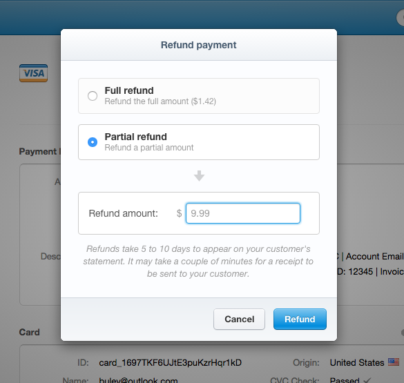 If choosing a partial refund, must provide amount to refund.