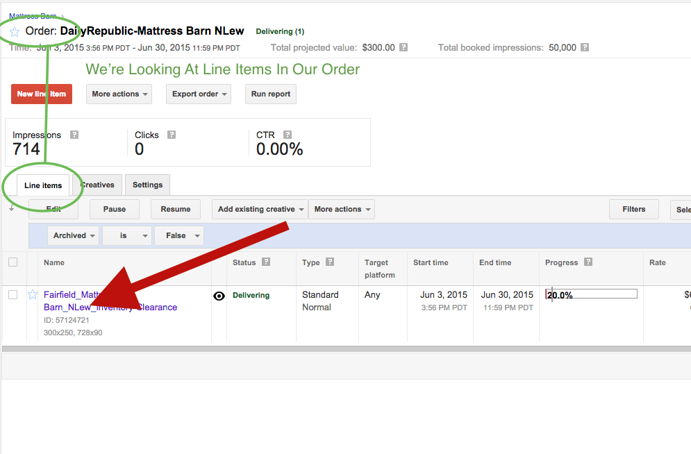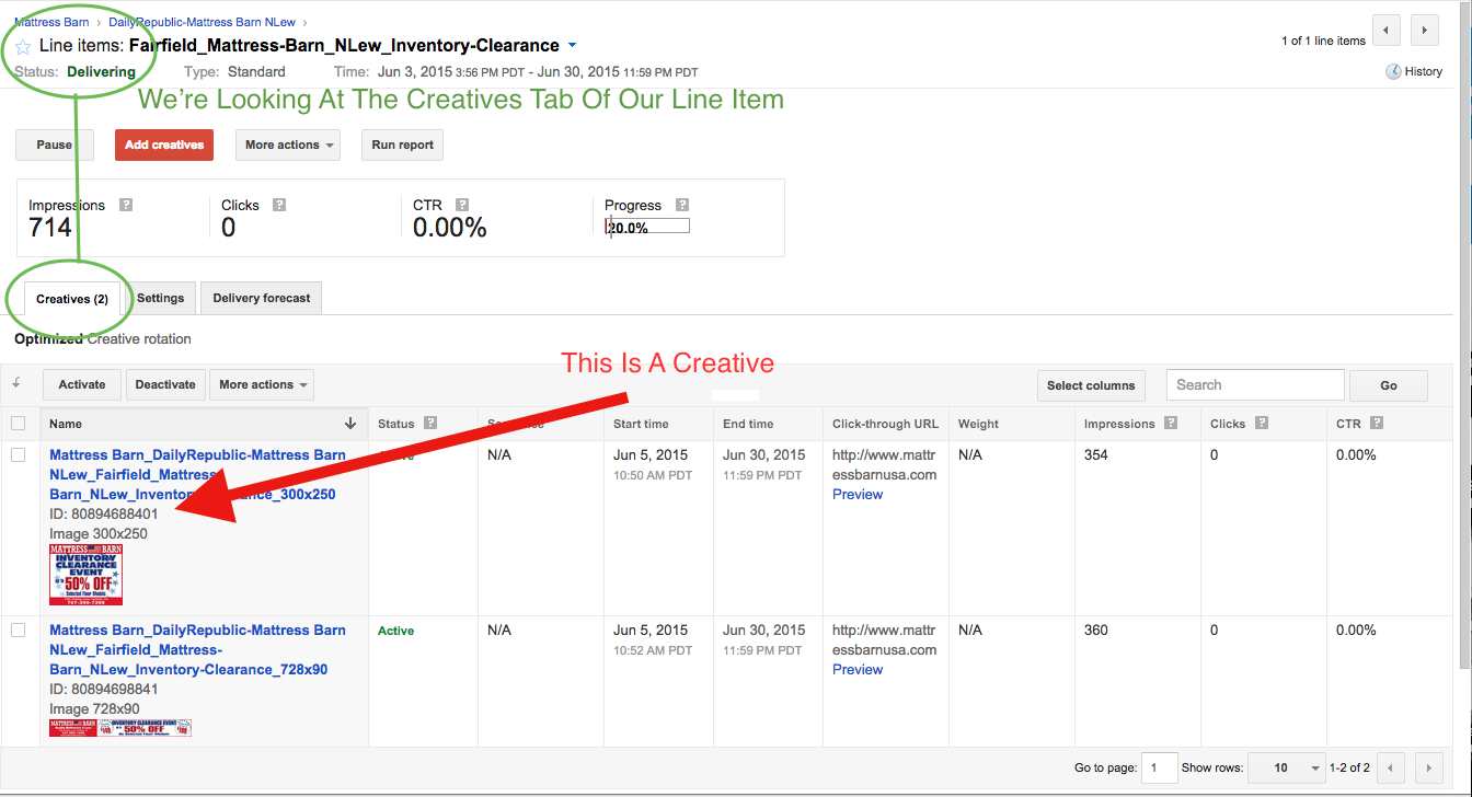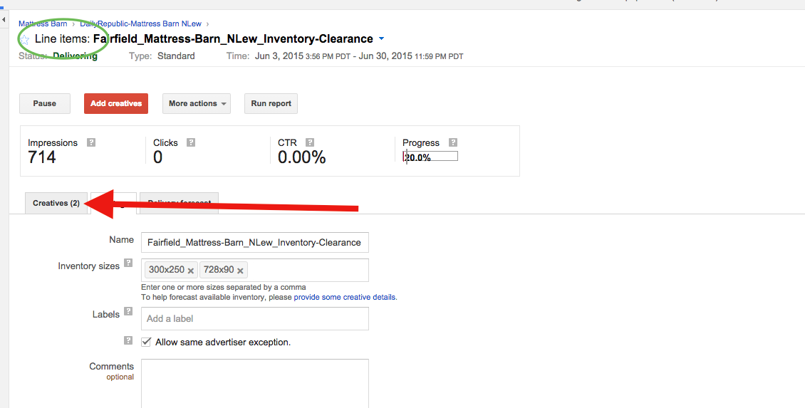 Step 1: Click on the line item that contains the creative