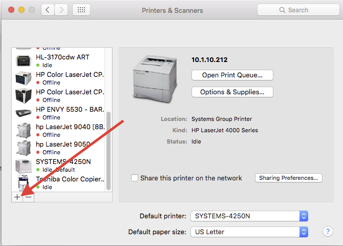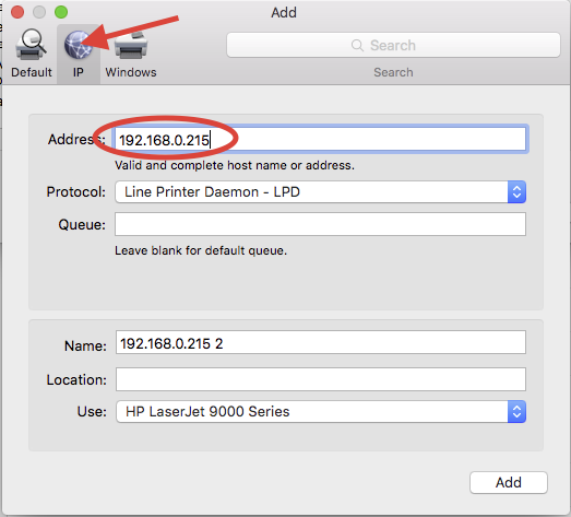 This will help you add the Circulation HP LaserJet 9000 printer (located in Circulation) as a backup in case your printer goes down. Note that your screen may look slightly different than the screen shots below depending on your version of Mac OS. The screen shots were taken from OS 10.11 (El Capitan.)