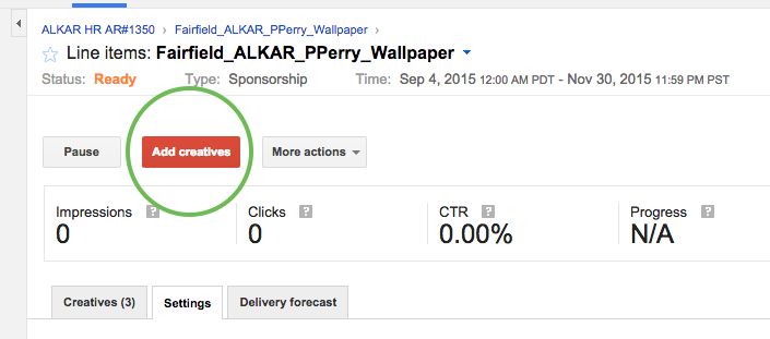 Step 0: Navigate to the Line Item to which you'd like to add the creatives. Add support for the 300x250 and/or 728x90 ad size.