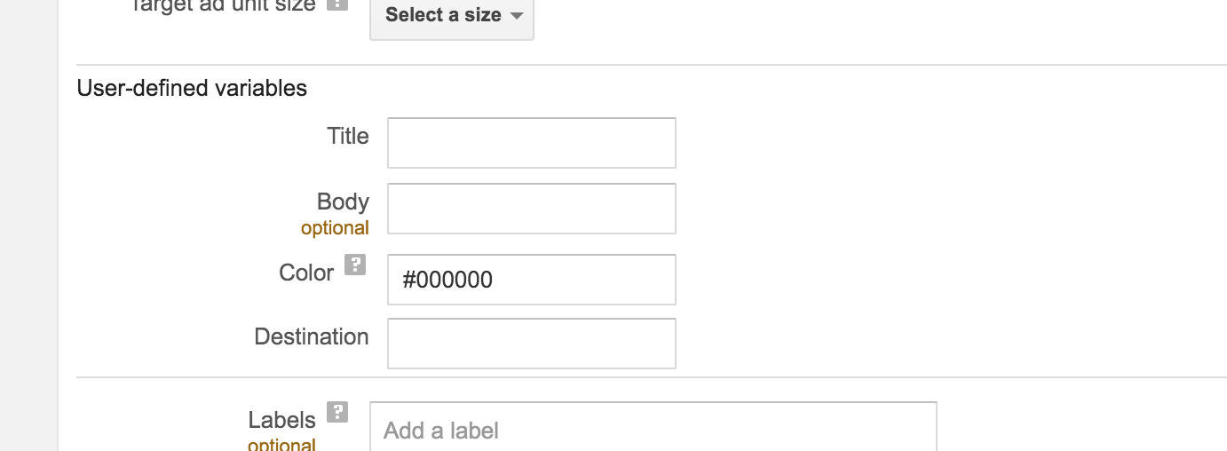 Text ads are simple text-based creatives that have a title, text color and optional body along with a click destination. We support 300x250 and 728x90.