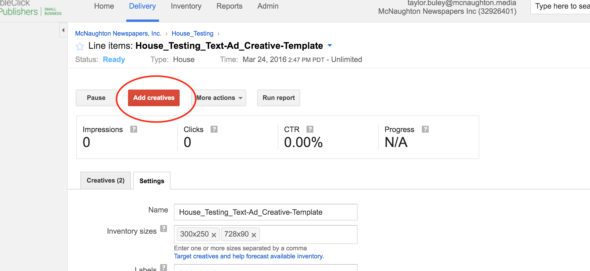 Step 0: Create your Order and proceed with either the "Save and Upload Creatives" button on the "Add Creatives" button with an existing order.