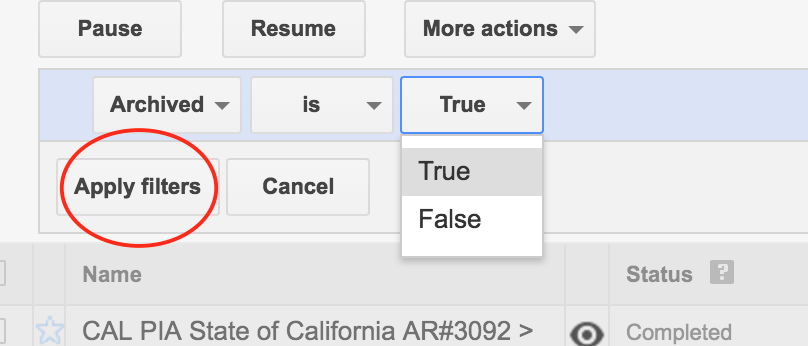Follow How Do I View Archived Line Items? June 01, 2016 23:39 McNaughton Newspapers, Inc. Advertising DFP Step 1: Toggle the Archived box to "True" Step 2: Click "Apply filters" 0 Comments Please sign in to leave a comment.