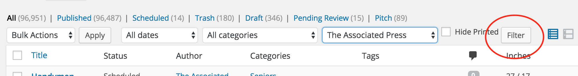 Step 1) Plug that month and year into the WordPress filter bar, hit "Filter" again.